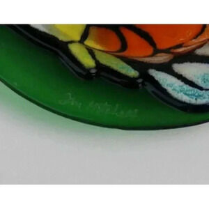 Vintage Signed Jan Michael Green Glass Fish Tropical Trinket Jewelry Plate