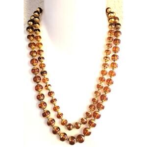 Vintage Signed Japan Electroplated Edge Amber Beaded Necklace Lucite 2 Strand