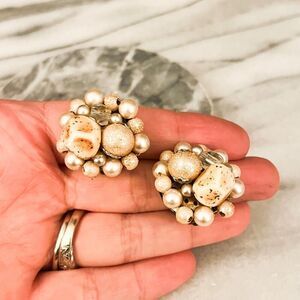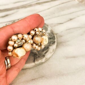 Vintage Signed Japan Bead Cluster Earrings Pale Pink Brass Setting Clip On
