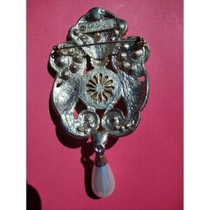 This is a Dramatic and Statement Piece! It has a Faux Pearl Drop, Purple Cabochon, Swarovski Crystals and Detailed Texture.