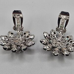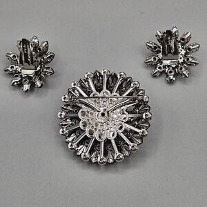 Vintage Signed Judy Lee Rhinestone Brooch & Earrings Set Jewelry Frosted Grey