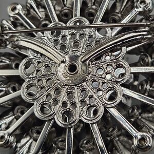 Add a touch of vintage glamour to your outfit with this stunning Judy Lee brooch and earrings set. The rhodium-plated metal and gray rhinestone material give a chic and timeless look. The marquise-shaped glass stone in the brooch is surrounded by a frosted grey design, adding a unique touch to the piece.
