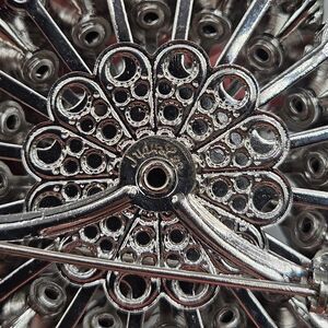 The set comes with a 2" brooch and matching earrings, all signed by the designer herself. The jewelry has no certificates, but its quality speaks for itself. Perfect for any occasion, this set is a must-have for any fashion-forward woman who loves to make a statement with her jewelry.