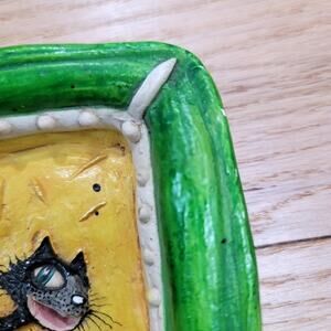 Vintage Signed Jumping Smiling Black Cat Wall Art Leaping Cat Kitten 1999