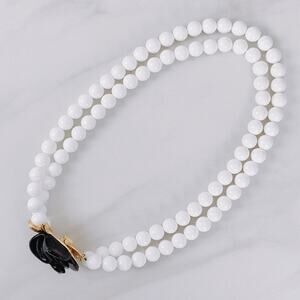 Vintage Signed K.J.L. for Avon Black Rose White Bead Necklace Gold Tone 1980s