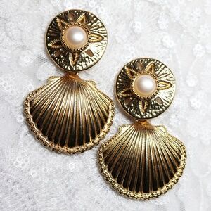 Vintage Signed Kenneth Jay Lane KJL Large Faux Pearl Studs Earrings Gold Tone