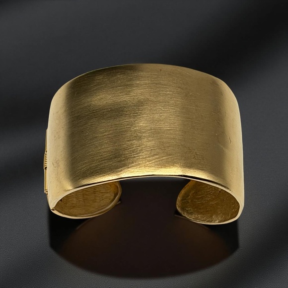 kennethlanevintagecuffgoldbraceletmattegoldtonehingedcuff1960s1970s1980skjlstatementbraceletboldcuffdesignerjewelryrunwaystylevintagefashioncollectiblebraceletsculpturalcuffwidegoldcuffposhfindsjewelrygift