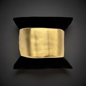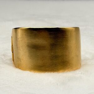 Vintage Signed Kenneth Lane Matte Gold Wide Hinged Cuff Bracelet KJL 1.5”x 6.5”