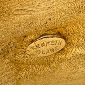 This beautiful, vintage Kenneth Lane wide gold cuff bracelet features a classy matte / satin brushed finish and bold sculptural shape that embodies Kenneth Lane’s iconic statement style. The cuff measures approx 1.5” wide at the largest point and opens easily with a side hinge, making it comfortable to put on and secure on the wrist. Interior circumference is about 6.5”. Signed KENNETH LANE inside on an oval cartouche, which is an earlier hallmark used in the late 1960s–early 1980s before the modern “KJL” branding. This places the bracelet in Kenneth Lane’s more collectible earlier era. Good vintage condition with mild age-related wear to the brushed gold finish, still beautifully rich and warm.