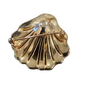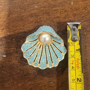Benefits Charity! Vintage Signed Kramer Blue & Gold Tone Shell Brooch Pre-owned