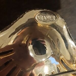 Vintage Signed Kramer Blue & Gold Tone Shell Brooch