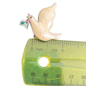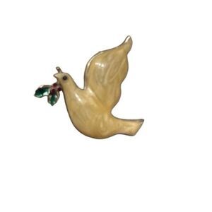 Vintage Signed LC Liz Claiborne Silver Tone White Enamel Dove Christmas Brooch