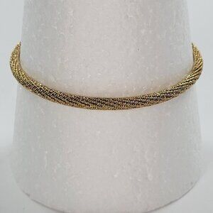 Vintage Signed LC Textured Gold Tone Metal Bangle Bracelet 7.5 In 3.8mm Wide