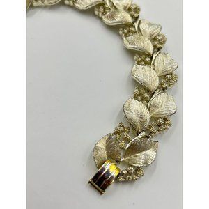 Vintage Signed LISNER Wide Gold Tone Bracelet Leaves Designed Brushed Textured