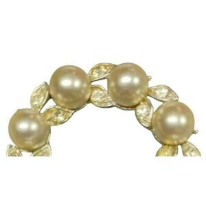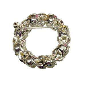 Vintage Signed Lisner Faux Pearl & Rhinestone Circle Brooch Pin
