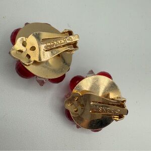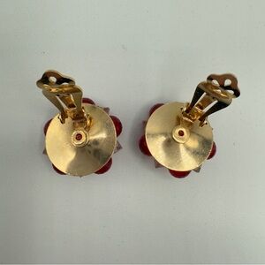Vintage Signed Lisner Red Cluster Earrings with Glossy Beads