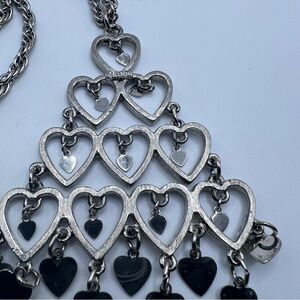 Vintage Signed Lisner Silver Toned Chandelier Heart Pendant Necklace