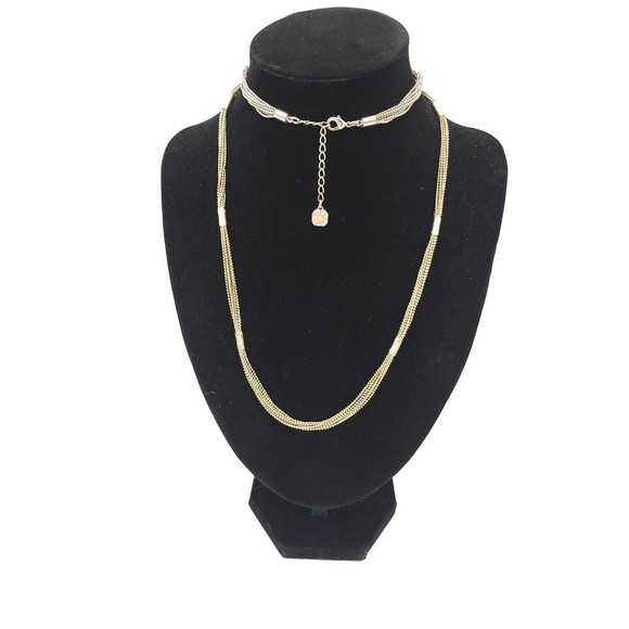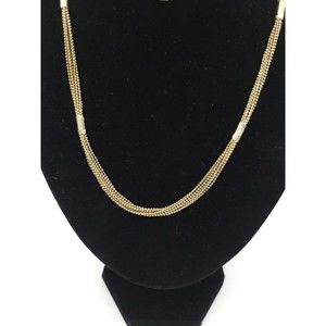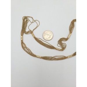 Vintage Signed Long Monet Multi Strand Necklace 8 Gold Tone Small Beaded Chains