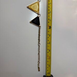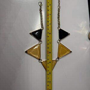 Vintage, signed Mika statement necklace, featuring a bold geometric design with eye-catching, triangular black & yellow colored stones and lobster claw clasp. Unique & collectible piece. In gently used, vintage condition.