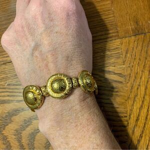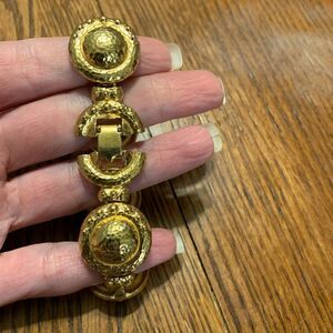 Vintage, Signed Monet, Bracelet, Gold Tone, Round Hammered Metal Links
