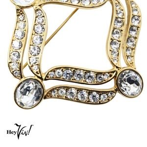 Vintage Signed Monet Pin Brooch Curvy Square w Rhinestones 2" Across - Hey Viv