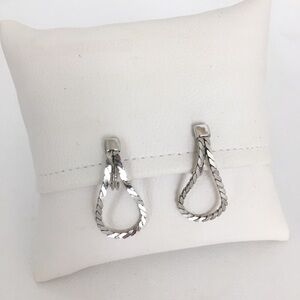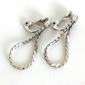 Vintage Signed Monet Shiny Silver Clip On Earrings Chain Loop Drop Earrings