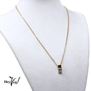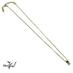 * Special Feature: Vintage Napier Gold Metal Chain Necklace with small pendant 3/8' x 1/4" with a square rhinestone