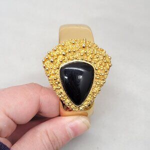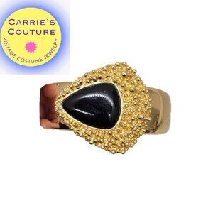 Vintage Signed Napier Modernist Goldtone Black Resin Cuff Bracelet 1973 Ad Piece
