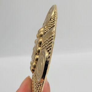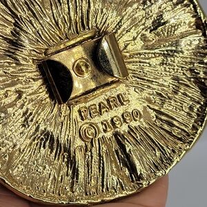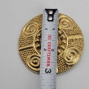 Vintage Signed PEARL 1990 Belt Buckle Round Gold Metal Enamel