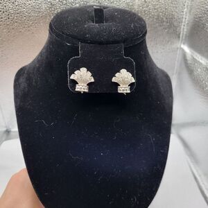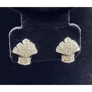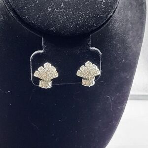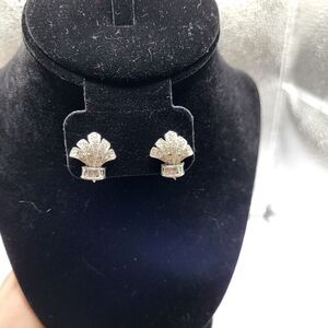 Vintage Signed Richelieu Silver Tone Art Deco Style Pave Earrings fleur de lis