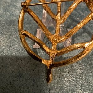Vintage Signed Roget Leaf Brooch, Gold Tone