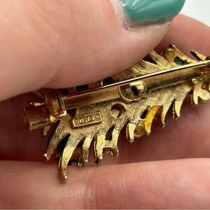 Vintage Signed Roma Small Christmas Tree Brooch Faux Pearl Gold Tone Star