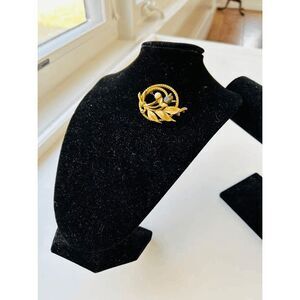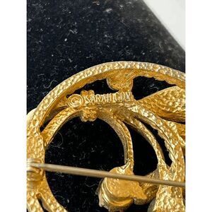 Vintage Signed Sarah Coventry Costume Gold Tone Pin W/faux Pearl And Jade Brooch