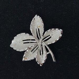Vintage Signed Sarah Coventry Silver Tone Clover Brooch Pin Pendant Etched Gift