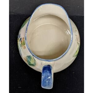 Vintage Signed Secla Portugal Hand Painted Blue Green Floral Pitcher Jug Vase
