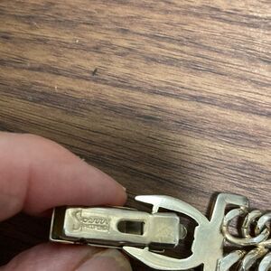 Features etched links and fold over clasp. Very well made. Excellent condition.