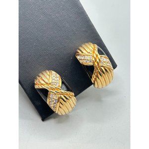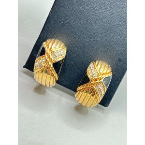 Vintage Signed Swarovski Clip On Earrings Gold Tone and Enamel with Crystals