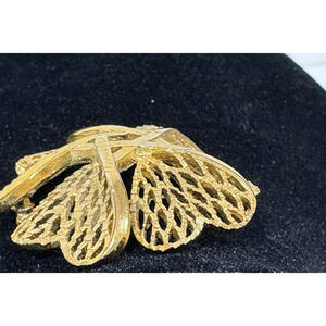 Vintage Signed TRIFARI Goldtone Textured Flower Star Shape Pin Brooch MCM Retro