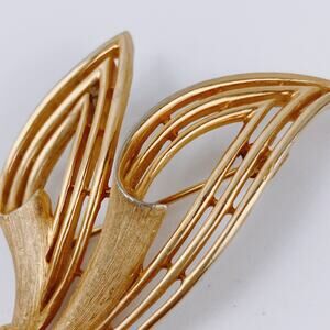 Vintage Signed Trifari Mid Century Brooch Leaf Openwork 1950s Gold Tone