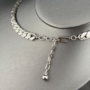 Vintage signed Trifari silver-tone herringbone chain (flattened braided style chain) collar / choker necklace.