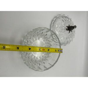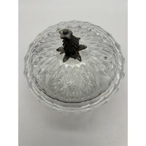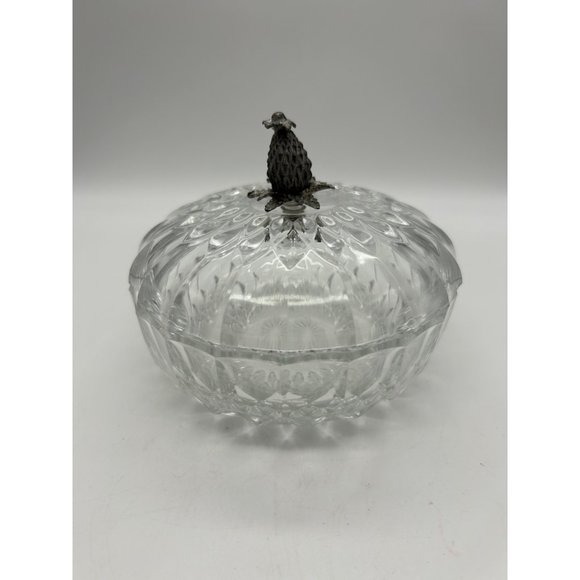 Vintage Signed Val St Lambert Crystal Covered Candy Dish Pewter Pineapple Accent On top. Signed on bowl and lid. Great Condition no cracks or chips 4.5" Diameter