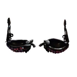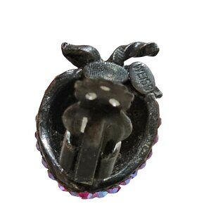 These charming vintage clip-on earrings feature strawberry designs adorned with vibrant rhinestones. An exquisite accessory for adding a touch of nostalgic elegance.