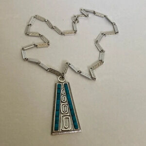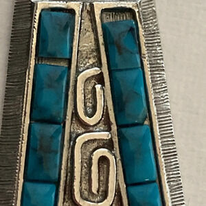 Vintage Signed Whiting Davis Turquoise on Silver Geometric Designed