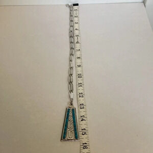 Whiting Davis silver tone faux turquoise pendant necklace. In good condition but there is a small notch out of one of the stones and small towards the top.