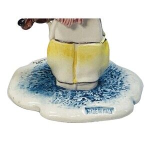 Vintage signed ZamPiva Art Pottery figurine of a clown musician playing a violin made in Italy. Ceramic figurine is a unique and whimsical piece of art pottery, showcasing a playful theme of a clown.