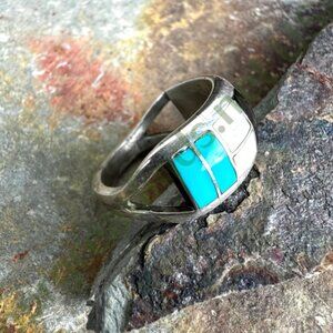 Vintage Signed Zuni Sterling Silver Channel Inlay Ring Size 8