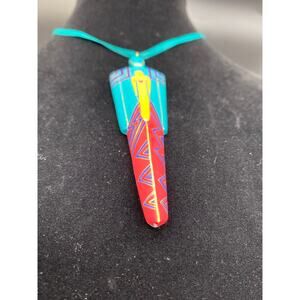 Vintage Signed brightly painted wood pendant Laurel Burch 1992