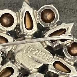 Vintage Signed Czech Prong Set Rhinestone Brooch Pin Silver Tone Open Back Foil