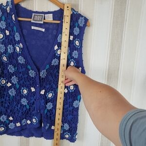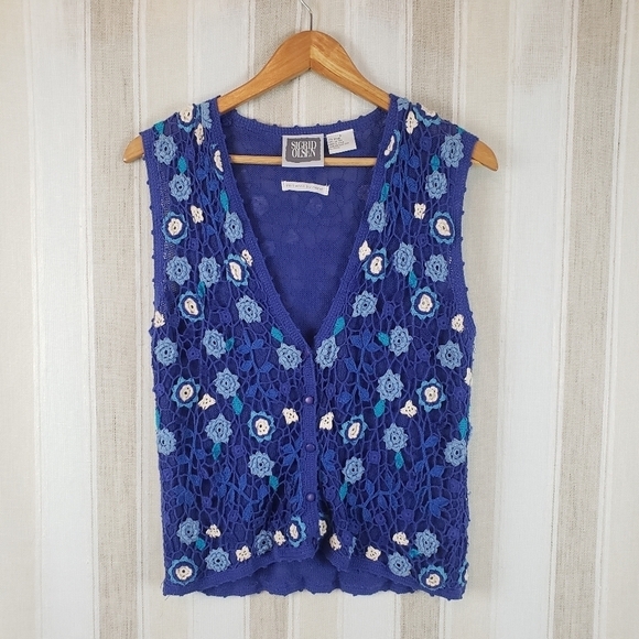 Vintage Sigrid Olsen Crocheted by Hand Sweater Vest Blue Size Small