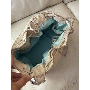Vintage Sigrid Olsen Leather Hobo Bucket Bag Drawstring Cottagecore Y2K Beige